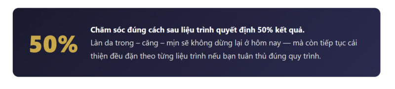 Thoa kem chống nắng SPF 30–50 mỗi ngày, kể cả khi bạn ở trong nhà. Da sau treatment nhạy cảm hơn đáng kể với tia UV — bỏ qua bước này là cách nhanh nhất để làm mất đi thành quả vừa đạt được và tăng nguy cơ thâm, nám tái phát.